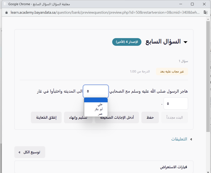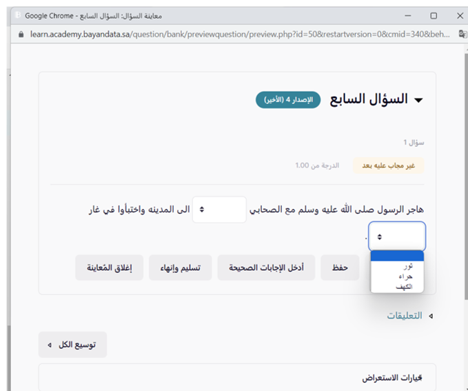 ستفتح نافذة لمعاينة السؤال بالكامل