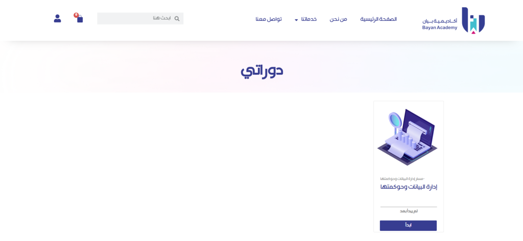 للانتقال للصفحة الرئيسية للدورة اذهب الى دوراتي وانقر على أبدأ .