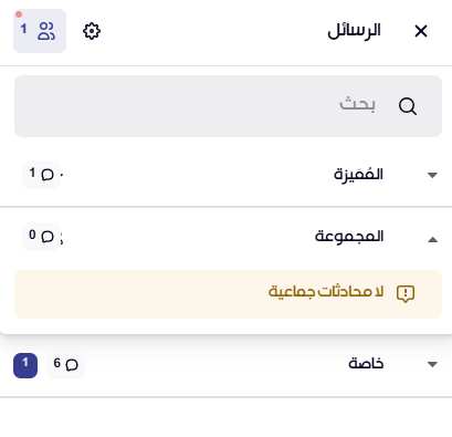 >>يمكنك محادثة المتدربين وعمل محادثة جماعية والتحكم باعدادات المحادثة عن طريق الضغط على ايقونة المحادثة أعلى يسار الشاشة.