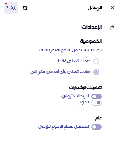 يمكنك تغيير الاعدادات الخاصة بالمحادثات وغيرها من اعدادات المحادثة.