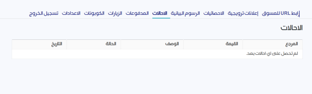 الحالة: توضح ما إذا كانت العمولة مدفوعة أو معلّقة أو مرفوضة.