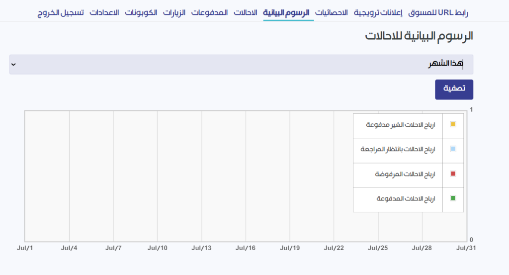 نسبة الإحالات المدفوعة، المرفوضة، وغير المدفوعة و بانتظار المراجعة لمعرفة حالة العمولة المستحقة بدقة.